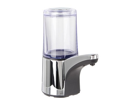 The Spout Sensor Soap Pump from simplehuman is at home in the kitchen or the bathroom. Ideal for dishwashing soap, hand soap, lotion or hand sanitizer. (Not recommended for very thin liquids or liquids with exfoliants.) ; The extra large opening of the soap chamber provides for easy, no-spill refills. Intuitive LED lights up green when sensor is activated, and turns red to signal low battery power. Easy-to-use buttons on the base control how much soap, lotion or sanitizer to dispense. Placing your hand under the sensor dispenses soap or sanitizer automatically. Extended spout dispenses soap over the sink, not onto the countertop. Clear acrylic soap chamber shows soap level at a glance. Model number: ST1004 ; Requires 4 AA batteries (not included) ; Width: 3.1. Depth: 5.8. Height: 6.8. Capacity: 8 fl oz